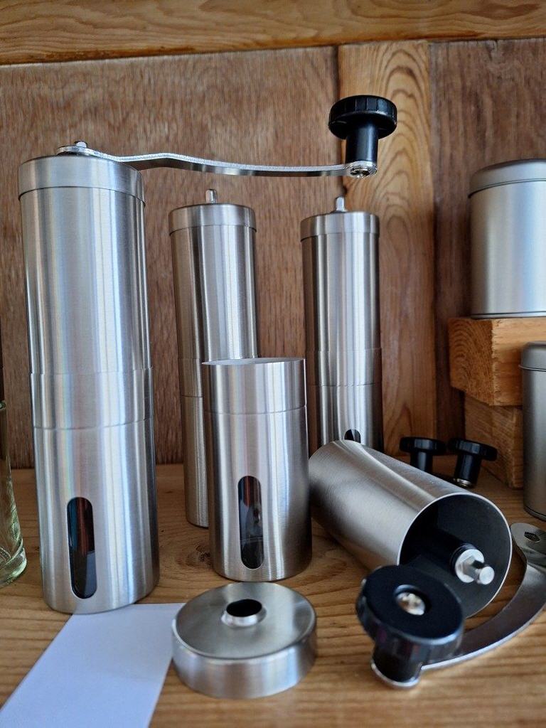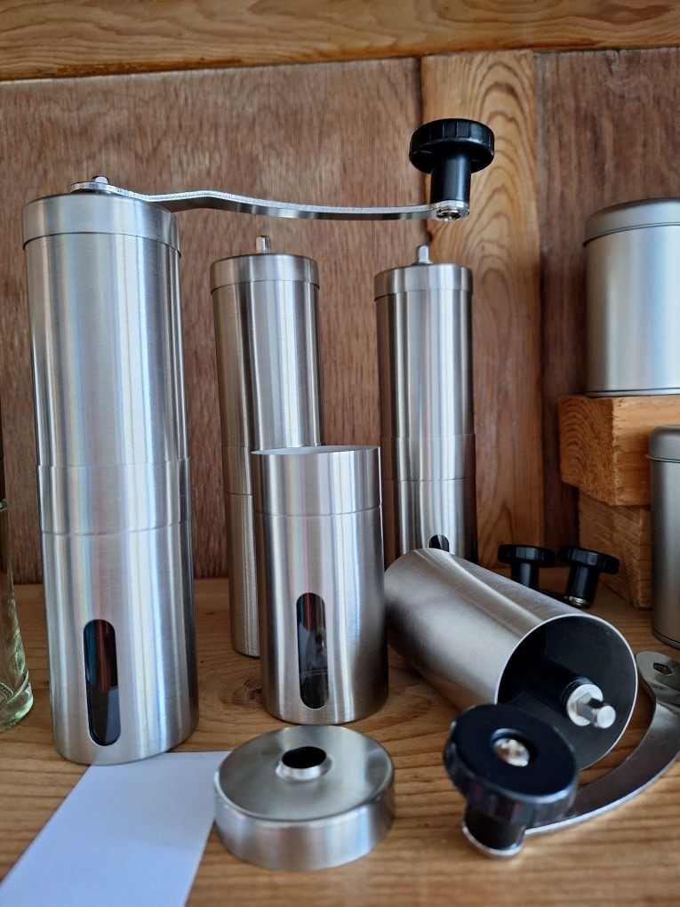 | 110038 | Kaffeemühle mit Keramikmahlwerk,fein bis grob/ Mühle aus Edelstahl Durchm.49 mm/Höhe 188mm, Griff abnehmbar, platzsparend für Unterwegs. | 1 Stück | 15,00 € | Abbildungen siehe unten |