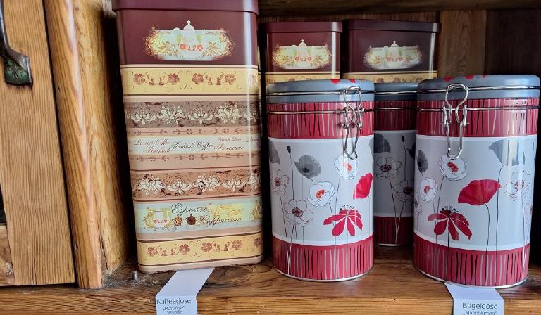 | 110023 | Rechteck. Stülpdeckeldose "KAFFEE-NOSTALGIE" B.127mm X T.98mm X H.260mm Bedruckt (Weißblech) | 1 Stück | 3,00 € | Abbildungen siehe unten |